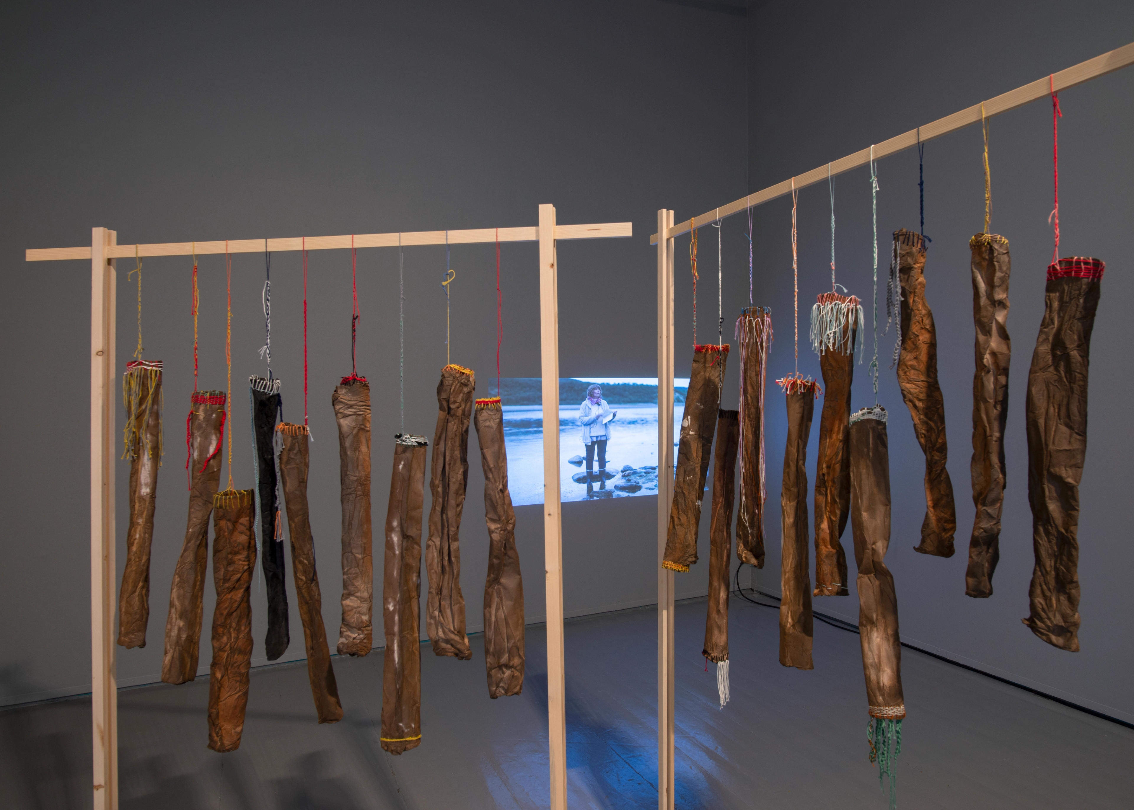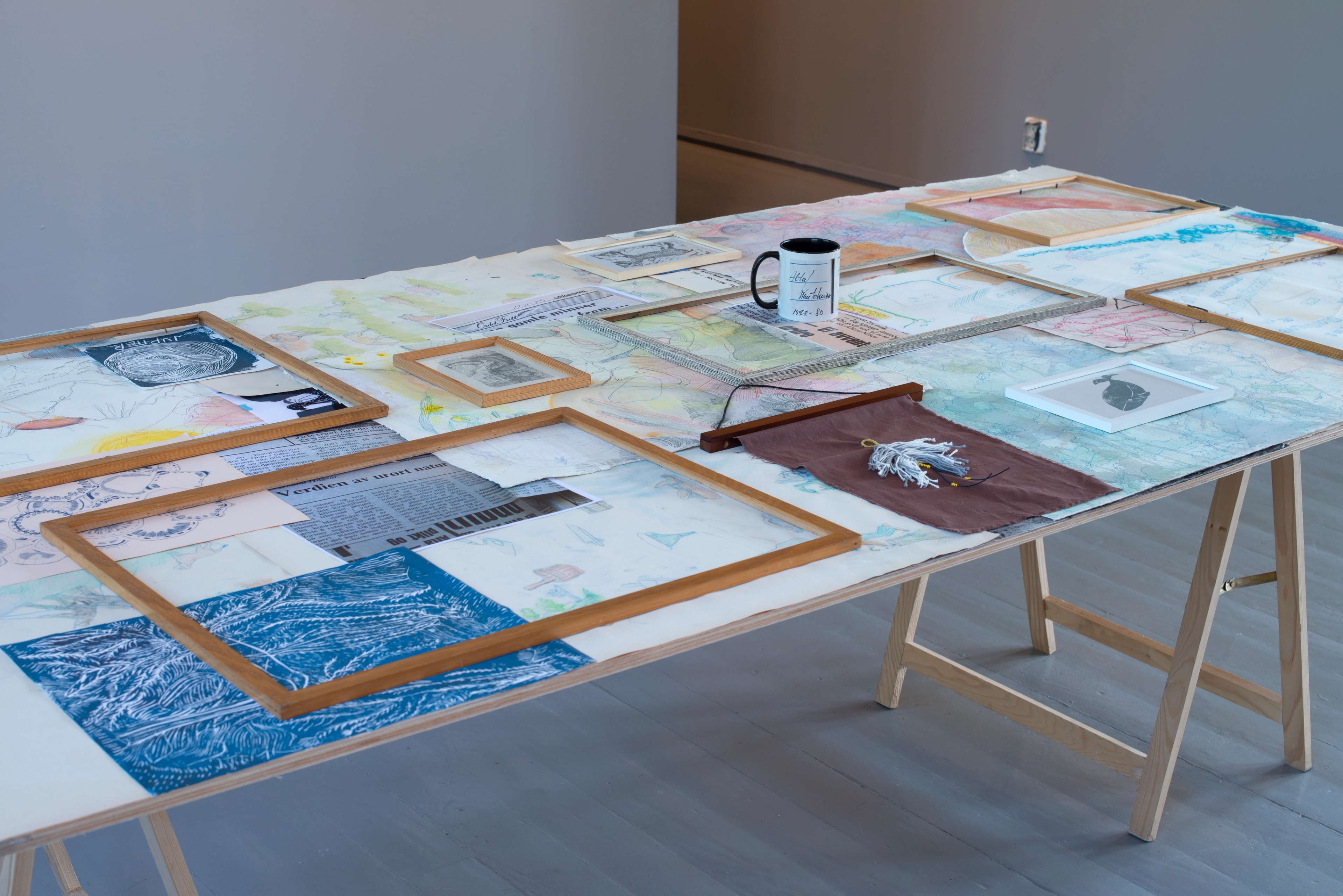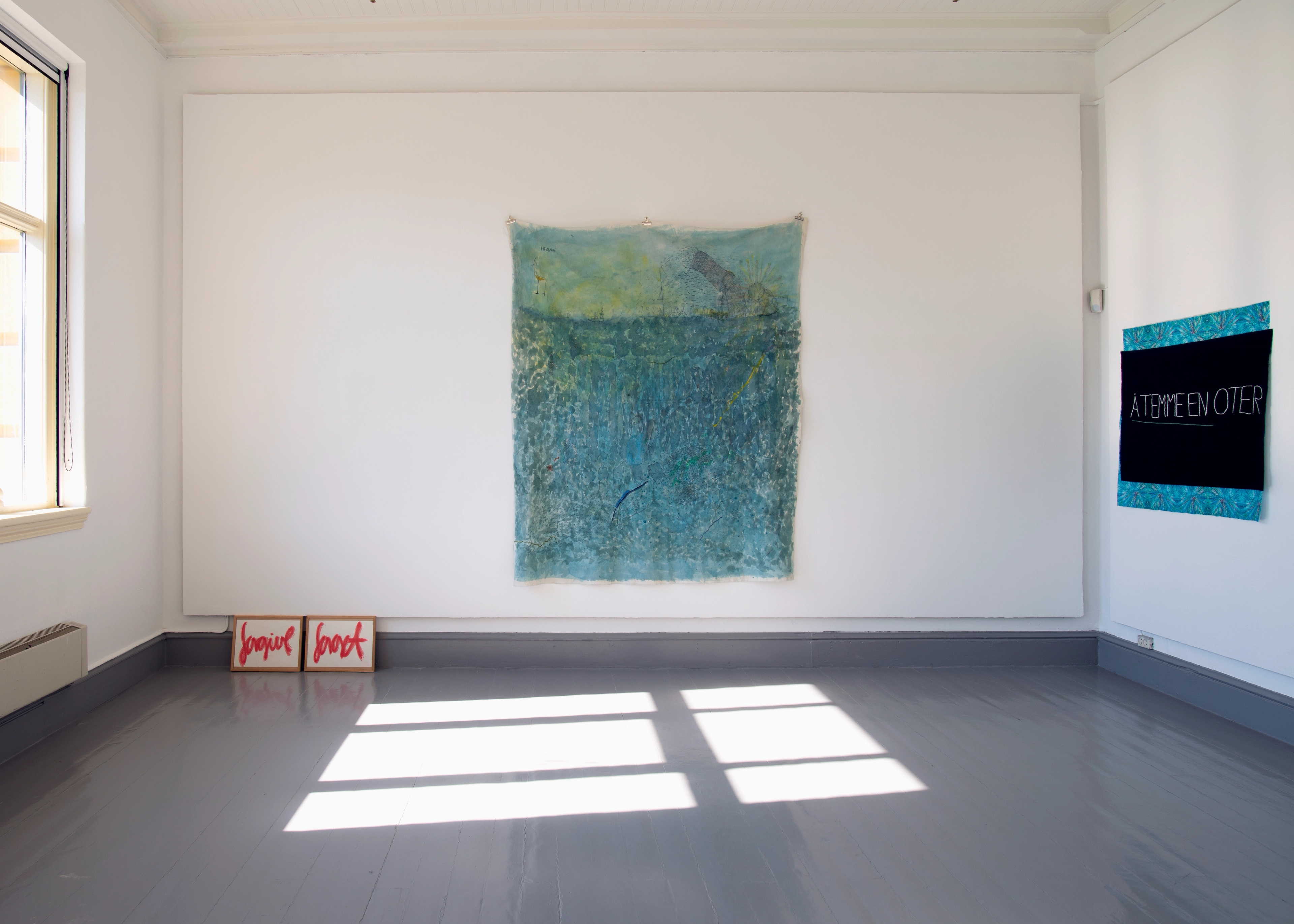 The exhibition at Tromsø Kunstforening has a sideways glance at life in the sea. Fish appear in shoals and the sea is a surrounding environment on paper and textile. The variegated exhibition form, with many parallel expressions and media that never seek rigour, escapes taming: it is itself to be regarded as a wild otter. Tårnesvik's motifs revolve around all kinds of animals; seals, giraffes and swans may be freely sketched with a light outline, but at the same time they are written into a politically pointed message. The ecosystem has been messed up by our actions, while at the same time embracing a greater resistance to oppressive strategies. There are parts of nature that should never be tamed and moulded, but we continue tirelessly against our better judgement. The wild is hopeless.